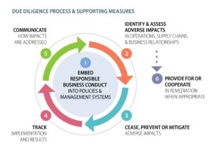 Aktsomhetsvurderingene (etter OECDs retningslinjer for flernasjonale selskaper) omfatter seks trinn:
